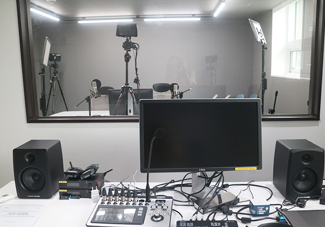 Studio space equipped with shooting equipment and soundproofing devices for video content production and live broadcasting